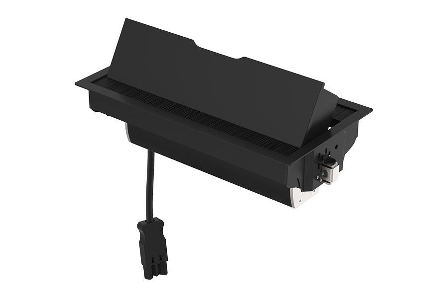 Indesq® Tesla inbouw stekkerdoos / vergaderunit wit 4-voudig - 2x WCD met randaarde schuin + 1x USB A-C charger / USB-lader (intern aangesloten) - kleur zwart RAL9005 fijnstructuur met zwarte koker en schakelmateriaal - 2-zijdig / dubbelzijdig scharnierende klep met borsteldoorvoer - geleverd met bevestigingsmaterialen - inclusief aansluitkabel circa 80 centimeter met GST18/3 stekker - geschikt voor tafelbladen tot 37,5mm - ideaal voor vergadertafels - inbouw stopcontact - bureau stekkerdoos.
