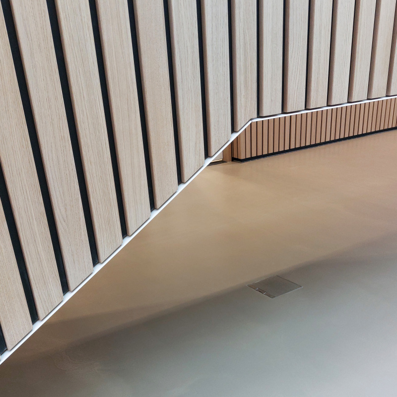 HPL werkte nauw samen met het team van Equans Maastricht, de installateur, om deze uitdagingen aan te pakken. Voor de specifieke eisen van het atrium, zoals de uitzonderlijke dikke vloer, ontwikkelde HPL een maatwerkoplossing door het Combi90 verzonken vloergootsysteem te verhogen met een opzetstuk. Deze verzonken vloergoot werd afgewerkt met een Basic 62mm vloerdoos en een T15ZR-deksel, waarin de gietvloer werd ingegoten.